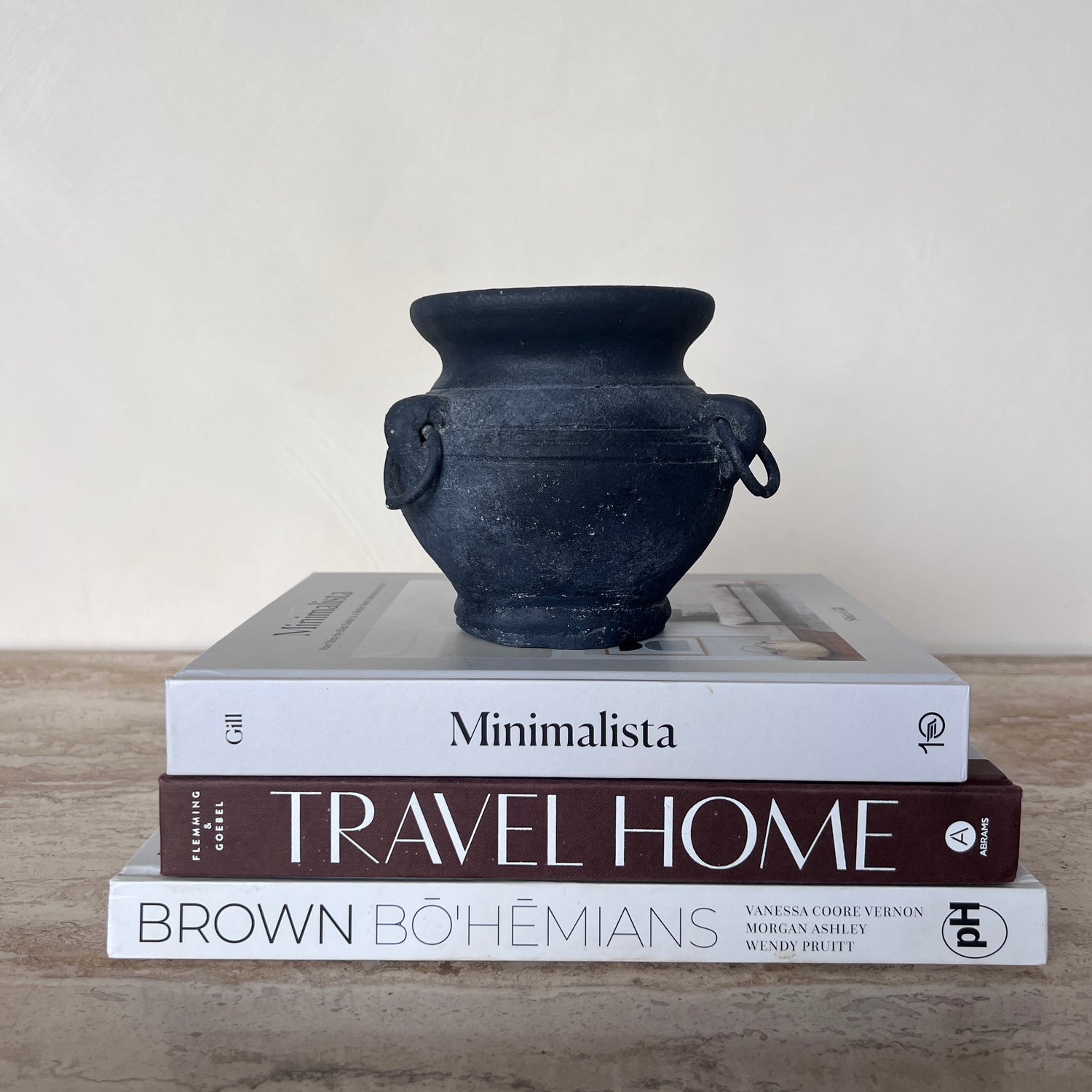 This ringed pot is a rustic little piece that can be styled on shelves or books.