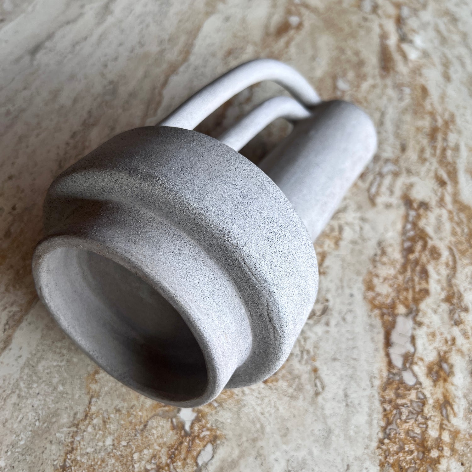 This beautifully textured vase in a warm neutral bone colour has a contemporary yet brutalist feel to it. The contrast between the cement like texture and the smooth curves makes this vase a unique and interesting piece.