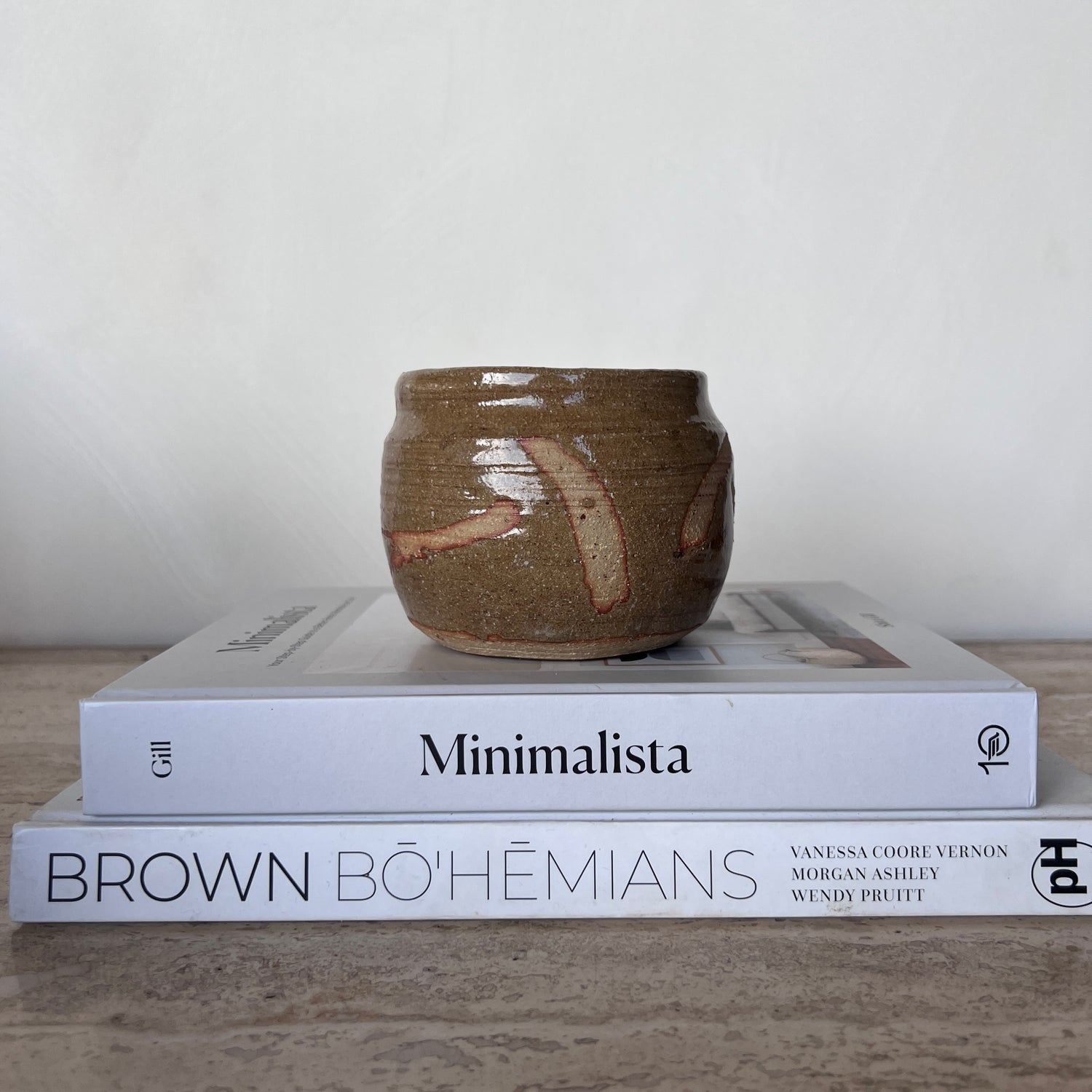 This pottery catchall / jar is a multi use piece. Use in your kitchen for salt or sugar, or add your chutney for serving. Use in your bedroom for rings or bathroom for makeup pads or q-tips. You can never have enough decorative jars.