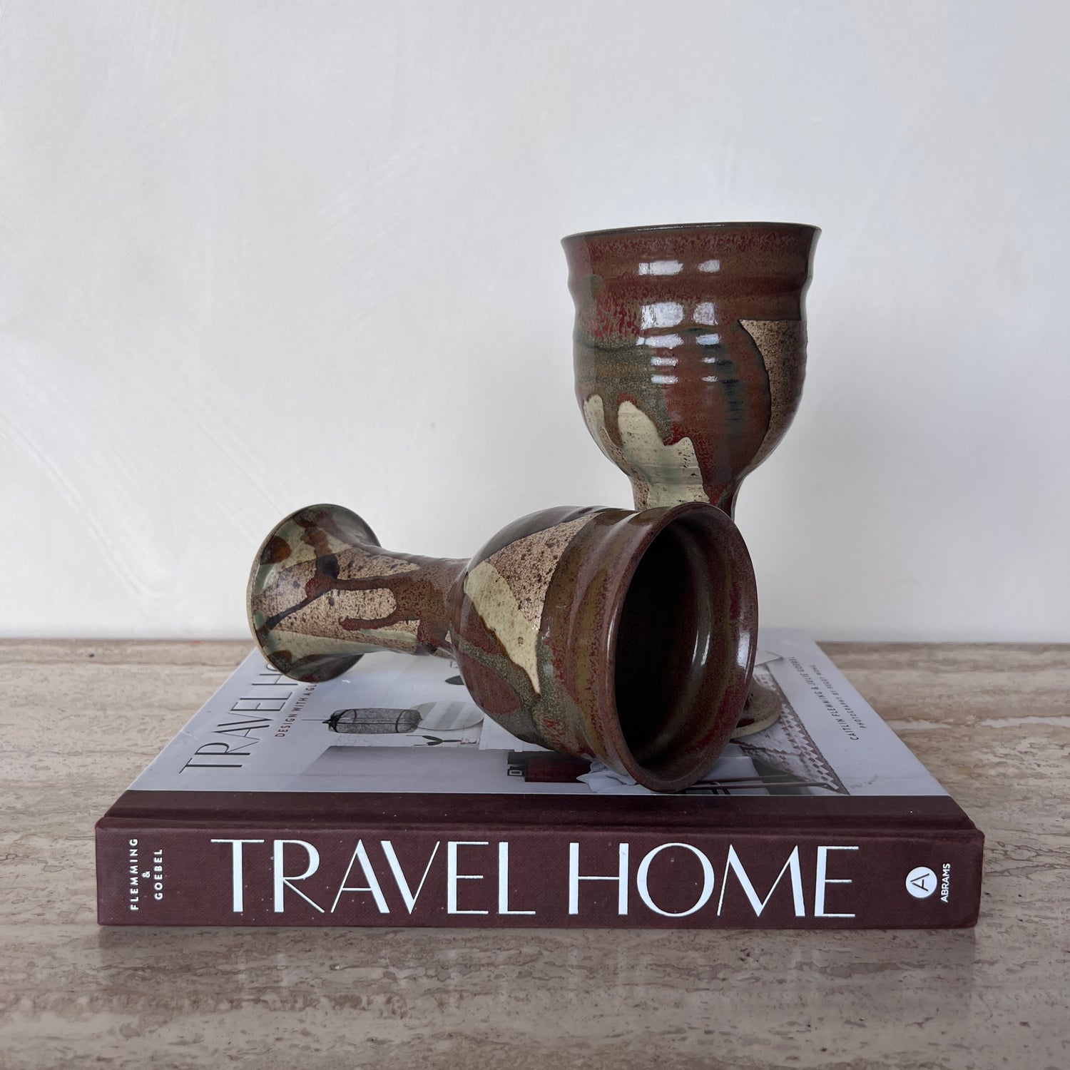 These beautiful wine goblets are hand built with a lovely drip design. Can be used for your preferred drink.